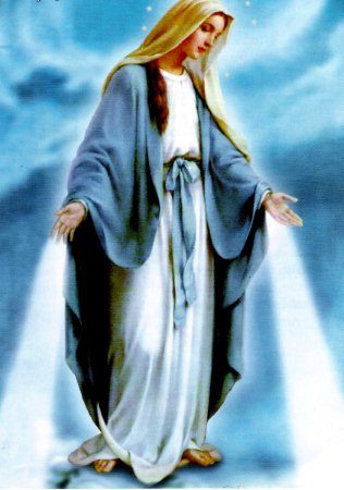 A Senhora era toda rodeada de tal esplendor que era impossível fixá-la. Das mãos desprendiam raios luminosos para todos os lados. Maria Santíssima lhe disse: "Eis o símbolo das graças que derramamos sobre as pessoas que pedem”. Como se não pudessem com o peso das graças, os braços se abaixaram e se abriram numa atitude graciosa. O rosto radiante da claridade celestial conservava os olhos elevados ao céu.